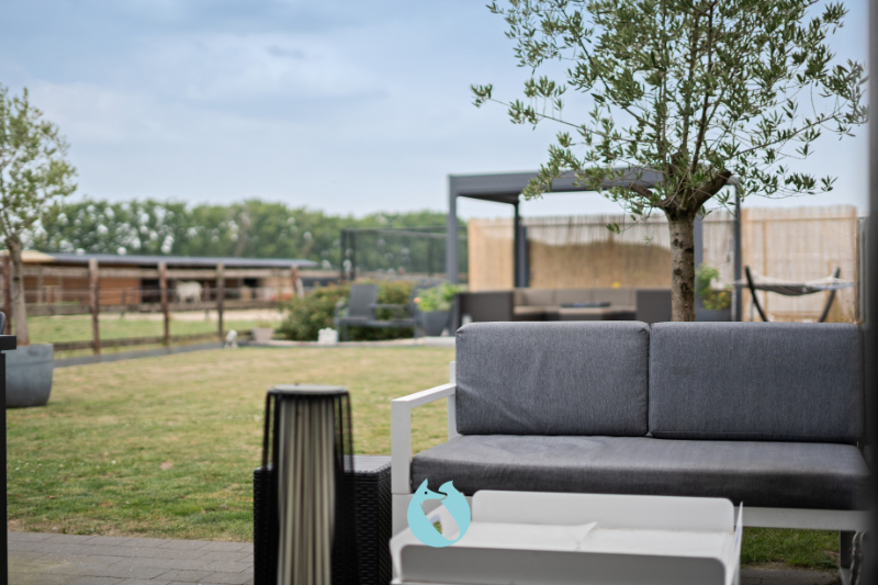Bovendien kan u achterin de tuin een extra terras met zonnetent terugvinden.